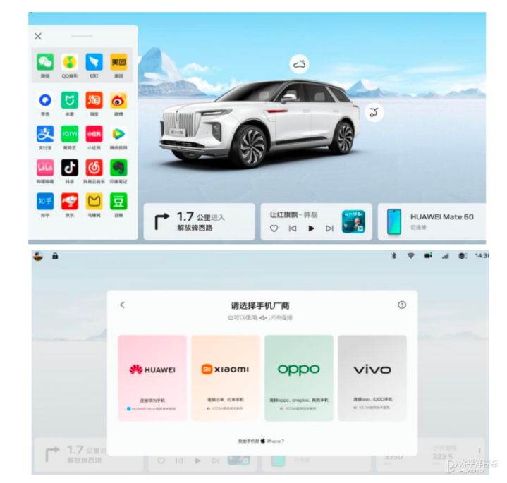 每个用户或者乘客使用手机不同,生态兼容性更是解决了用户的“手机适配焦虑”,华为、苹果用户都能实现无缝连接,CarPlay、HiCar功能自然衔接,专属车机APP覆盖导航、音乐、车控等全场景,真正实现“上车不用掏手机”,让智能体验融入日常,而非刻意炫耀。